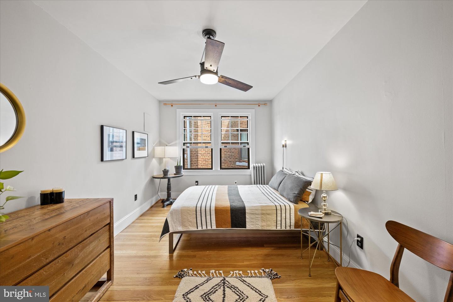 Not another cookie cutter home! Offering a perfect blend of vintage and modern, this stylish residence features classic details like original refinished hardwood floors, exposed brickwork, arched doorways, high ceilings and a wall of custom shelving, along with the conveniences of a beautifully renovated kitchen and bathroom - all in a location that puts the best of this vibrant neighborhood at your doorstep. The all new table space kitchen is a cook's delight and provides a Verona gas range with a hood that is vented to the exterior of the building, sleek black cabinetry, torched white oak open shelving and quartz counters. The king sized bedroom provides for a variety of furniture configurations, as well as opportunities for additional storage. The low monthly fee includes many utilities as well as real estate taxes. Located directly across from Walter Pierce Park, this well run coop is pet friendly, includes an assigned storage space in the lower level and also has bicycle storage on each floor. Moments to two metro stations, Rock Creek Park, 18th Street and more. Don't miss this one!